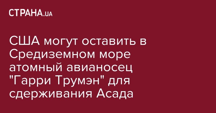 Власти США могут оставить в Средиземном море авианосец "Гарри Трумэн", чтобы он "сдерживал" Россию. Об этом сообщает Defense News.