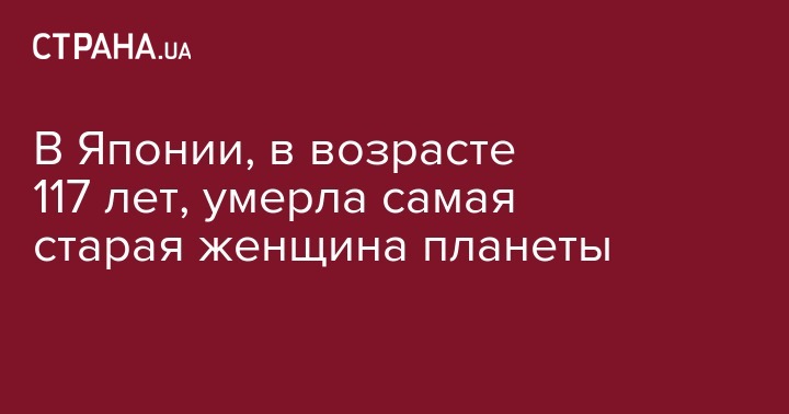 В Японии, в возрасте 117 лет, умерла самая старая женщина планеты