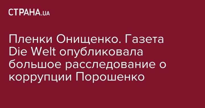 Пленки Онищенко. Газета Die Welt опубликовала большое расследование о коррупции Порошенко