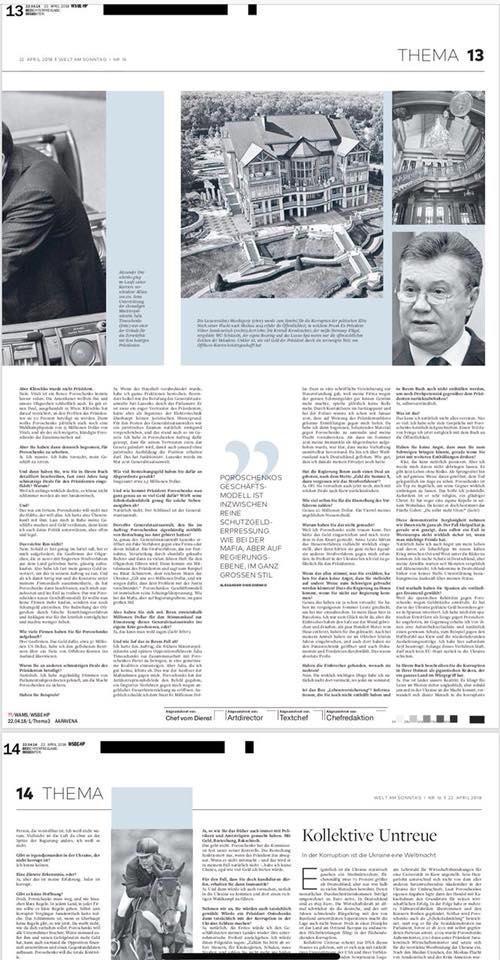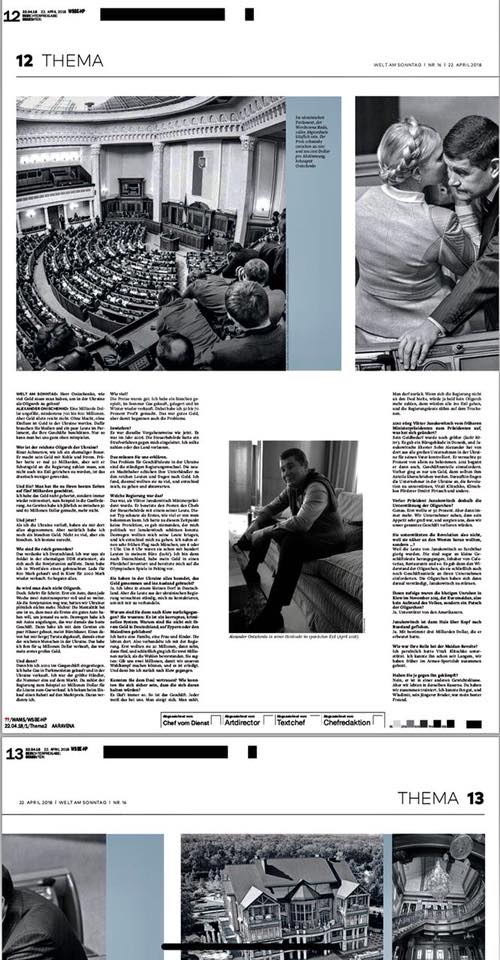 Крупнейшая немецкая газета Die Welt посвятила теме коррупции Петра Порошенко несколько полос газеты на основе откровений Онищенко.
