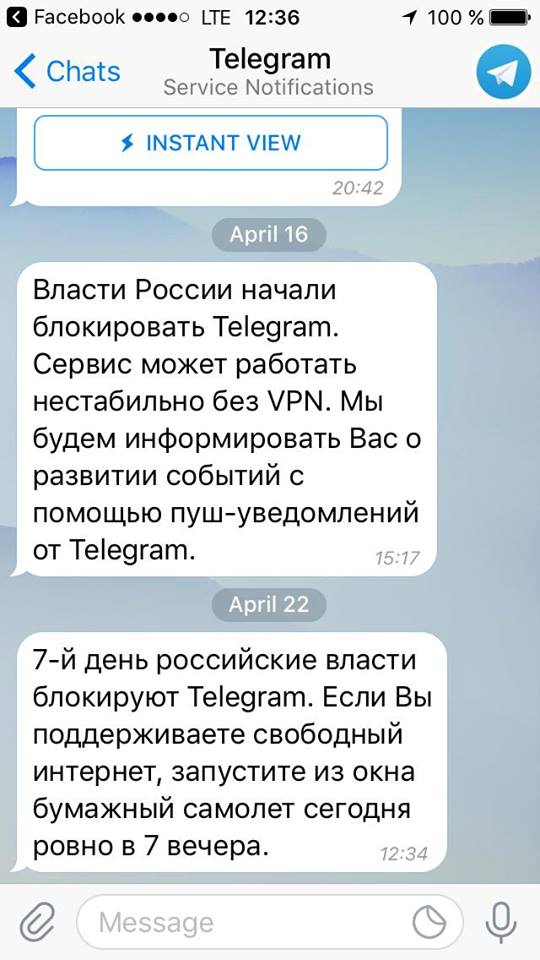 В оповещении сказано, что это акция в поддержку свободного интернета, приуроченная к седьмому дню блокировки Telegram в России.