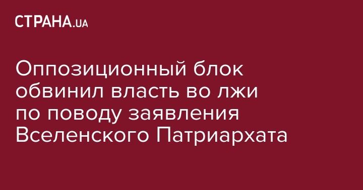 "Власть лжет о начале процедур по предоставлению автокефалии и позиции Константинопольского Синода. Заявляя о начале процедур, необходимых для предоставления автокефалии Православной Церкви в Украине, власть сознательно искажает позицию и решения Священного Синода. Начав предвыборную кампанию, власть блефует на вопросе, который не может быть предметом пиара и политических спекуляций," - говорится в заявлении Оппозиционного блока.