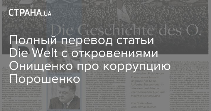 Полный перевод статьи Die Welt с откровениями Онищенко про коррупцию Порошенко