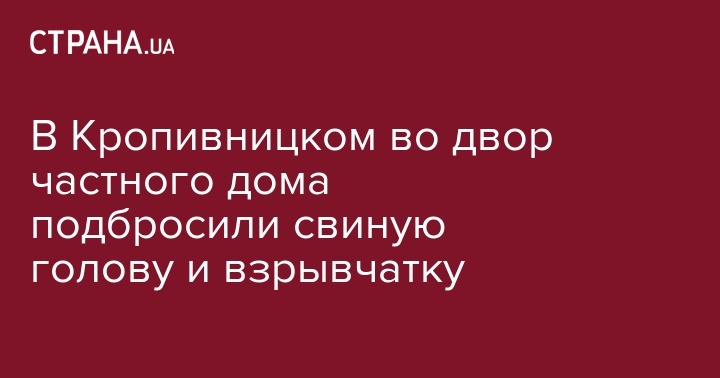 Неизвестные подбросили на частное подворье в Кропивницком свиную голову и предмет, внешне похожий на взрывчатку. Эту информацию  УНН подтвердили в пресс-службе полиции в области.