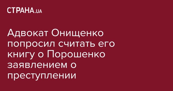 Адвокат Онищенко попросил считать его книгу о Порошенко заявлением о преступлении