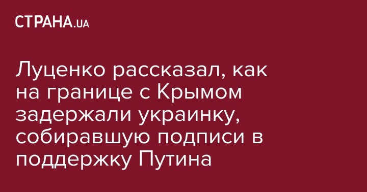 На административной границе с анексированным Крымом задержана украинка, проводившая на полуострове сбор подписей в поддержку Путина. Об этом сообщил генпрокурор Юрий Луценко на своей странице в Facebook.