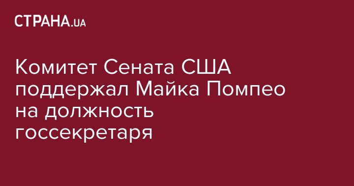 Комитет Сената США по международным отношениям проголосовал за кандидатуру Майка Помпео, выдвинутого президентом Дональдом Трампом на должность Государственного секретаря США. Об этом сообщает Reuters.