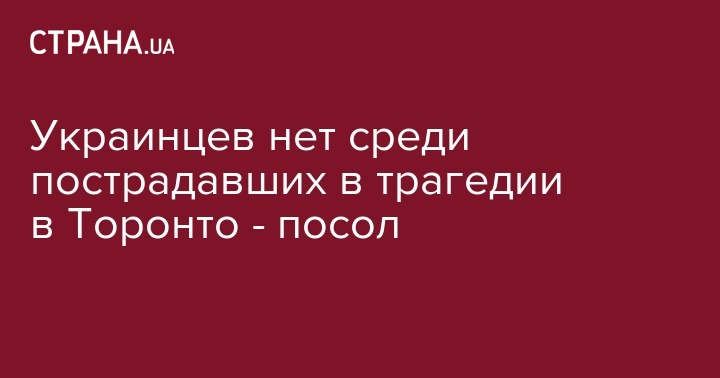 Граждане Украины не пострадали во время трагедии в Торонто, где 23 апреля фургон въехал в толпу. Об этом сообщил посол Украины в Канаде Андрей Шевченко, передает Радио Свобода.