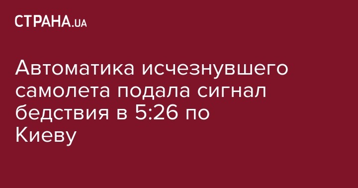 Автоматика исчезнувшего самолета подала сигнал бедствия в 5:26 по Киеву