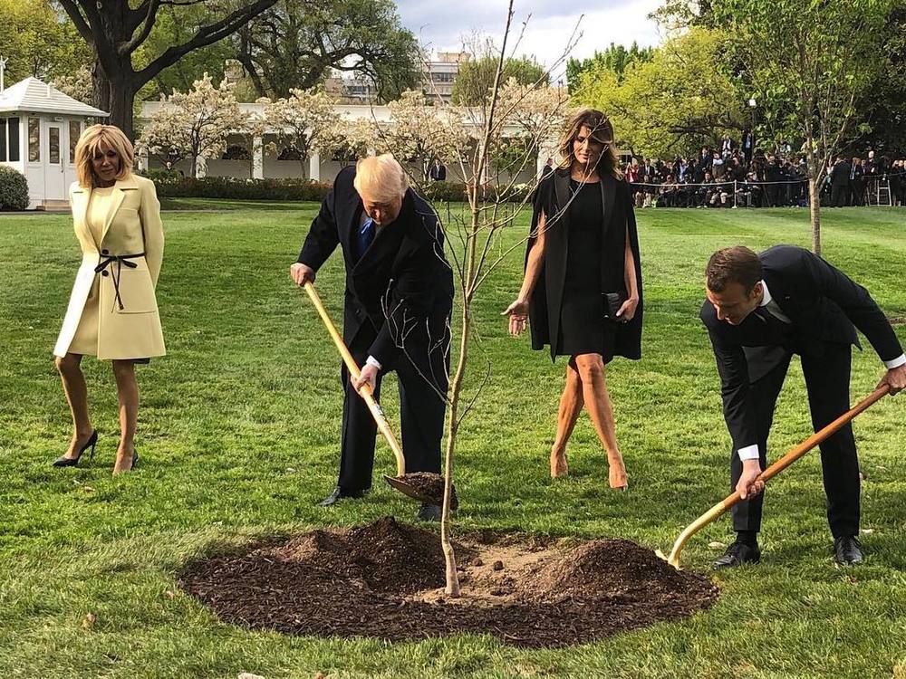 Мелания Трамп и Брижит Макрон оголили ноги и помогли мужьям посадить дуб у Белого дома