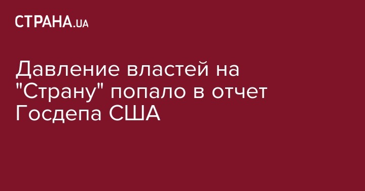 Систематическое давление властей на свободу слова и на неугодные СМИ, в частности, на интернет-газету "Страна", попало на страницы доклада Госдепа США о правах человека в Украине. Доклад подготовило Бюро демократии, прав человека и труда.