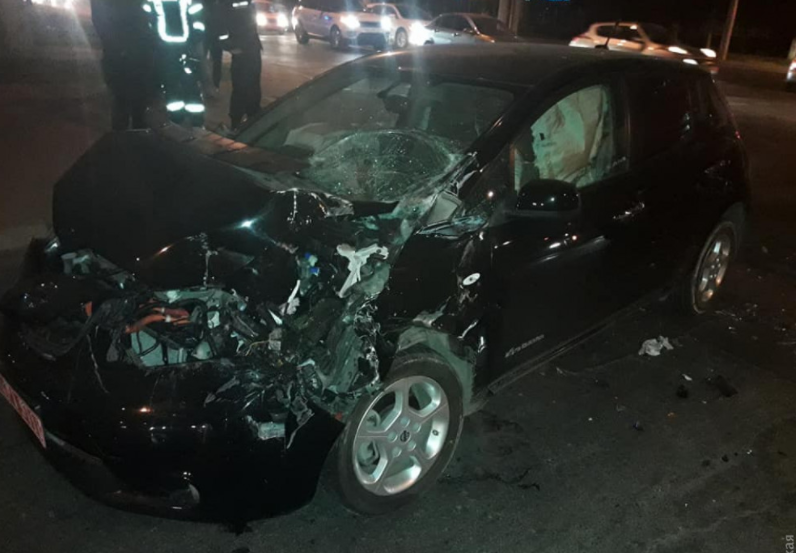 В Одессе пожарная машина столкнулась с электромобилем Nissan Leaf.