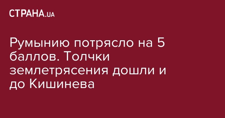 В среду вечером, 25 апреля, в Румынии произошло землетрясение. Об этом сообщает "Интерфакс" со ссылкой на руководителя Центра экспериментальной сейсмологии Института геологии и сейсмологии Академии наук Молдовы Иона Илиеша.