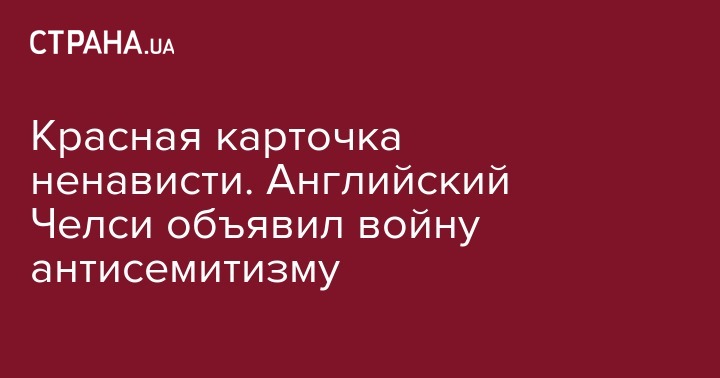 Футбольный клуб "Челси" и Всемирный Еврейский Конгресс (WJC) объявили о начале глобального стратегического партнерства под лозунгом "Красная Карточка Ненависти", которое направлено на борьбу с антисемитизмом, широко распространенным в спорте.