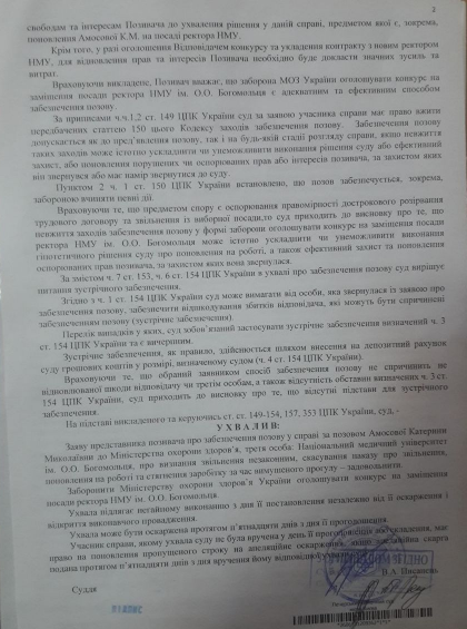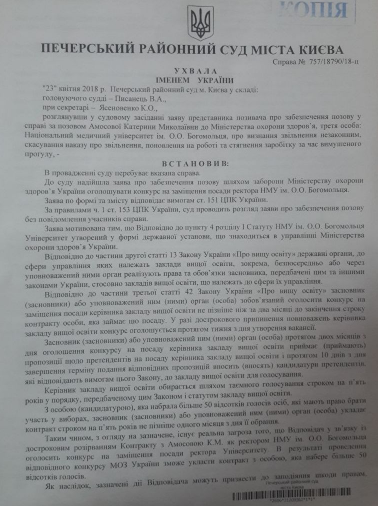 Пресс-служба медицинского универститета представила постановление Печерского районного суда Киева .