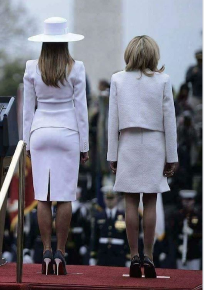Фото двух первых леди, сделанное сзади тут же привлекло внимание пользователей соцсетей, которые принялись сравнивать жен президентов.