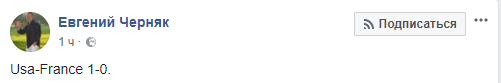 Например, украинский предприниматель, владелец водки "Хортица" Евгений Черняк иронизирует, что, судя по фото, "Usa-France 1-0".