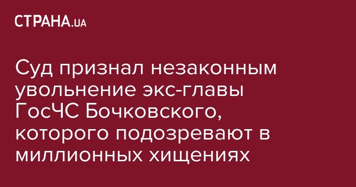 Окружной адмиснуд Киева признал противоправным и отменил распоряжение Кабмина Украины об увольнении Сергея Бочковского, которого подозревают в крупном хищении, с должности главы ГосЧС Украины.