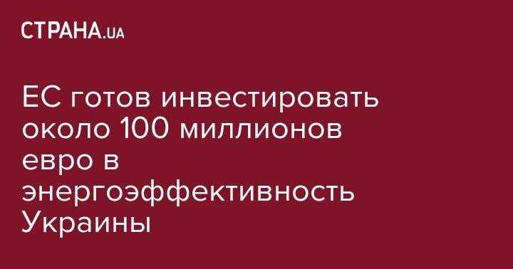 Евросоюз готов инвестировать около 100 миллионов евро в энергоэффективность Украины.