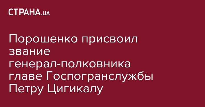 Президент Украины Петр Порошенко присвоил звание генерал-полковника главе Государственной пограничной службы Украины (ГПСУ) Петру Цигикалу.