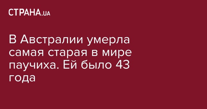 Самка, обитавшая в Западной Австралии, дожила до 43 лет и была посмертно признана самым старым пауком в мире. До этого рекорд принадлежал 28-летнему мексиканскому тарантулу.