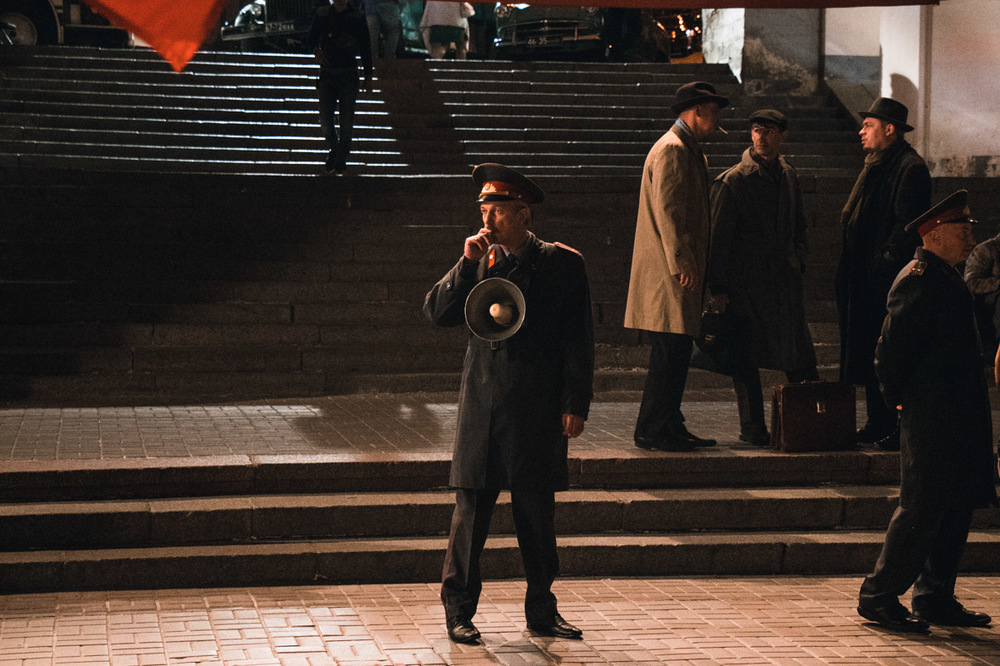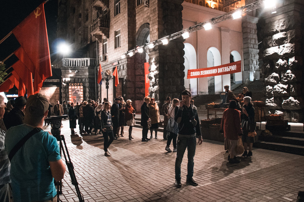 Установку советской символикина съемочной площадке в центре столицы начали 29 апреля около 20:00. Съемочная группа работала до 6:00.