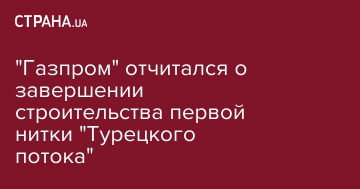 Российский "Газпром" заявил о завершении строительства первой нитки подводного газопровода "Турецкий поток". Об этом сообщили в пресс-службе "Газпрома".