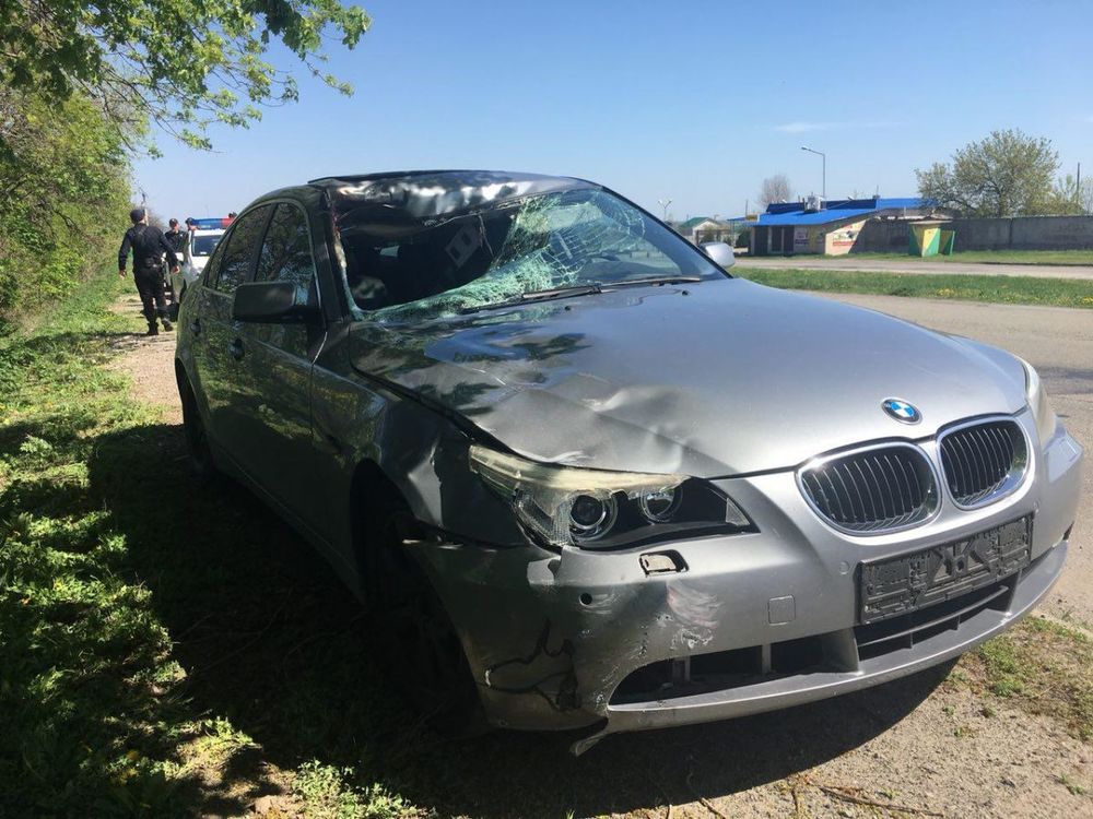 В 14:40 по городу был введен план-перехват на указанную марку автомобиля. Спустя несколько минут патрульный экипаж заметил подходящий по ориентировке BMW, который двигался в сторону выезда из города. На Криворожской трассе, уходя от полиции, угонщик сбил женщину-велосипедиста. От полученных травм она скончалась на месте. По словам патрульных, от велосипеда почти ничего не осталось - сильный удар превратил его в груду обломков, которые затем "укатали" другие автомобили.