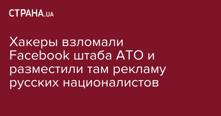 Неизвестные хакеры в Facebook взломали страницу штаба АТО и разместили там рекламу вступления в ряды "Русского национального единства" (националистическая организация в России). Об этом передает 112 Украина.