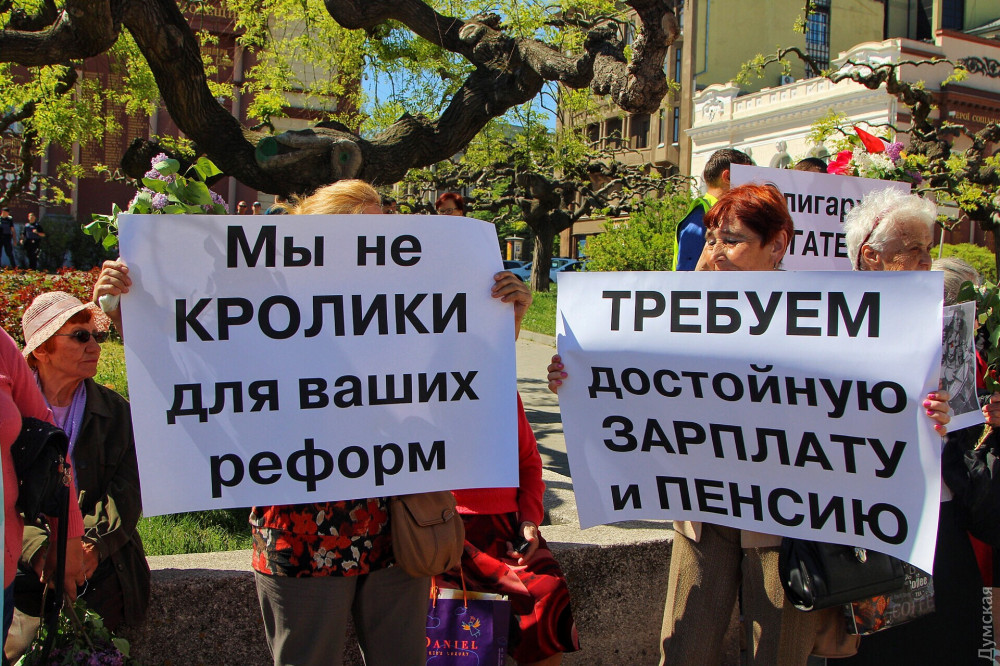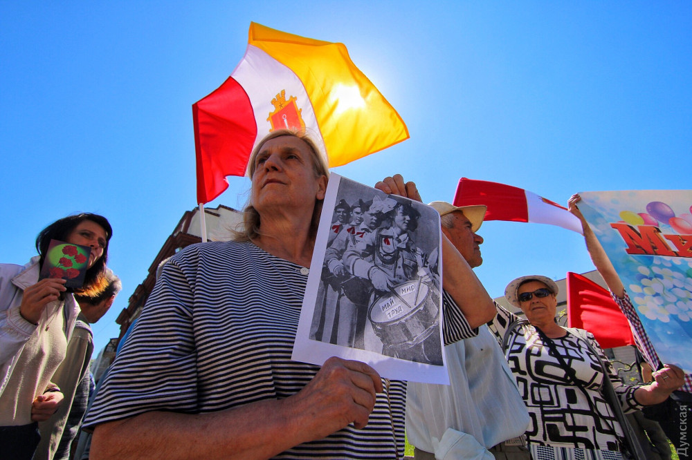 В Одессе  сорвали первомайскую демонстрацию, которую организовал активист Антимайдана Морис Ибрагим. На ней в основном присутствовали люди пенсионного возраста. Они несли плакаты с требованиями достойных пенсий и зарплат.
