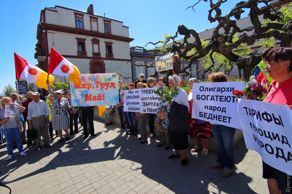 Митинг проходил возле Оперного театра. Его участники потребовали вернуть восьмичасовой рабочий день, бесплатную медицину и высокие пенсии. В это время приглашенный оркестр играл одесские мотивы. Запрещенной в Украине символики на митинге не было.