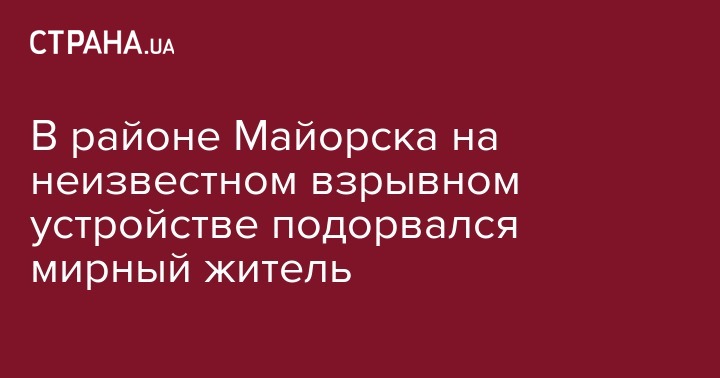 Около 12.30, 1 мая, в районе населенного пункта Майорск (подконтрольная часть ООС) на неизвестном взрывном устройстве подорвался мирный житель. Угрозы его жизни в настоящее время нет.