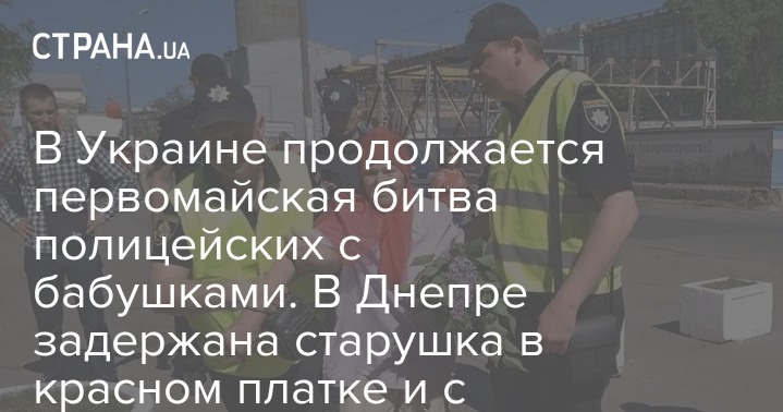 В Украине продолжается первомайская битва полицейских с бабушками. В Днепре задержана старушка в красном платке и с георгиевской лентой