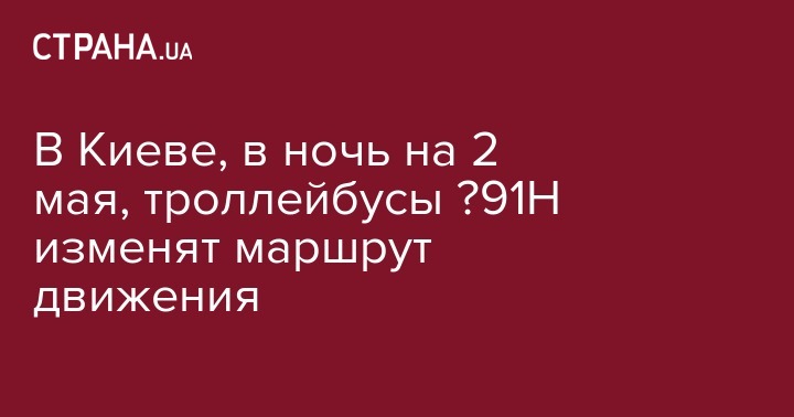 В Киеве, в ночь на 2 мая, троллейбусы №91Н изменят маршрут движения