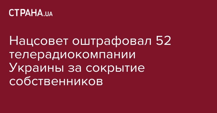 Национальный совет Украины по вопросам телевидения и радиовещания наложил штрафные санкции на 52 телерадиокомпании за нарушение требований законодательства по представлению в регуляторный орган информации о структуре собственности.