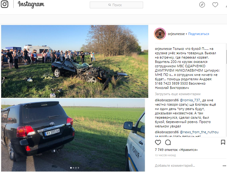 В Харьковской области 1 мая в ДТП погиб известный харьковский автоблогер, гонщик и тату-мастер 22-летний Андрей Василенко. Авария произошла на дороге, ведущей на Старый Салтов в районе села Кутузовка в результате столкновения Chevrolet Corvette и внедорожника Toyota Land Cruiser. Информация о происшествии тут же разошлась по соцсетям.