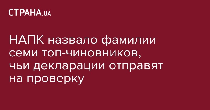 НАПК назвало фамилии семи топ-чиновников, чьи декларации отправят на проверку