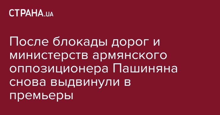 Лидер армянской оппозиции, депутат Никол Пашинян вновь официально выдвинут кандидатом на должность премьер-министра страны.