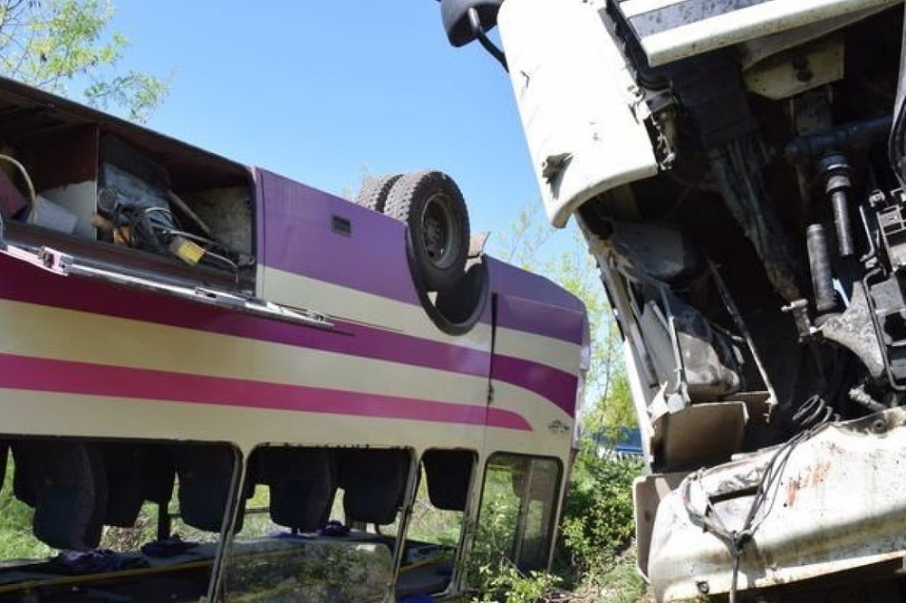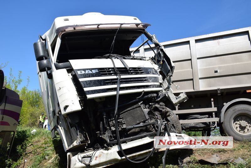 "Микроавтобус вооруженных сил Украины Mazda E2200 ехал со стороны Очакова, в направлении Одесской трассы. На разбитом участке дороги водитель притормозил перед ямой. В этот момент сзади микроавтобус "догнал" двигавшийся следом седельный тягач DAF с полуприцепом. Фура ударила микроавтобус сзади и сбросила его с дороги на обочину. После этого зерновоз выехал на встречную полосу движения, где "лоб в лоб" столкнулся с рейсовым автобусом "Николаев-Очаков". От полученного удара автобус слетел в кювет и перевернулся на крышу", - сообщили журналисты с места событий.