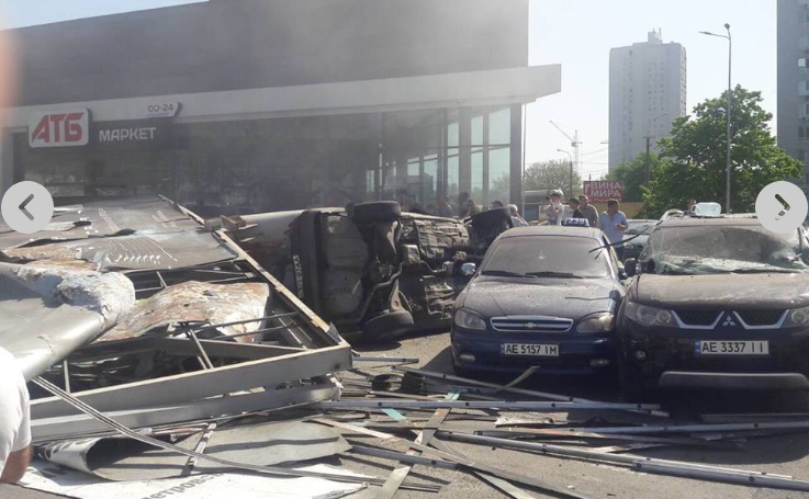 В Днепре фура протаранила десяток автомобилей и влетела в парковку супермаркета