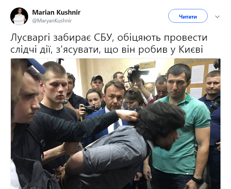 "Лусварги забирает СБУ, обещают провести следственные действия, выяснить, что он делал в Киеве", - написала корреспондент "Радио Свобода" Марьян Кушнир в Twitter.