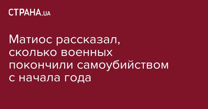 "За период этого года, это данными ЕРДР, до сегодняшнего дня совершили самоубийство 33 военнослужащих. Больше всего - в зоне АТО. Причины разные - от семейных неурядиц до психического неприятия усталости", - заявил Матиос.