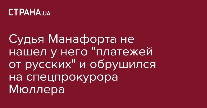 Судья Манафорта не нашел у него "платежей от русских" и обрушился на спецпрокурора Мюллера