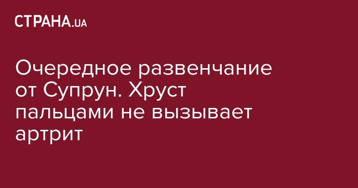 Очередное развенчание от Супрун. Хруст пальцами не вызывает артрит