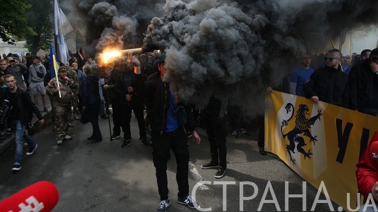В 10.00 колонна стартовала от монумента Родины-Матери к зданию Верховной Рады. В марше принимают участие около тысячи человек, некоторые из них сразу же начали пускать дымовые шашки. Улицы затянуло дымом, но на маршруте следования полиция на это практически не реагировала.