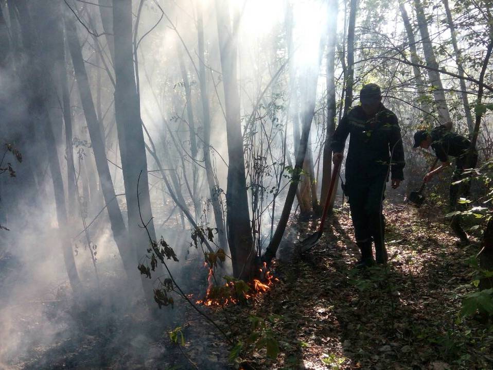 "К месту вызова немедленно были направлены спасатели из ближайших пожарно-спасательных подразделений. Прибыв к месту происшествия было установлено, что горит около 500 кв.м травяного настила и деревьев. Тушение пожара осложнялось отсутствием проезда для пожарной техники.