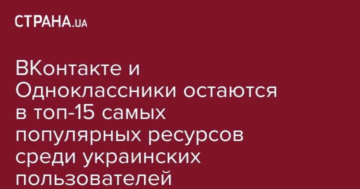 Odnoklassniki.ru также входят в топ-25 - этот заблокированный в Украине сайт соцсети занимает 23 место в рейтинге.