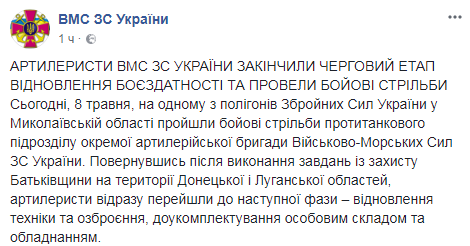 Во вторник, 8 мая, на одном из полигонов в Николаевской области военнослужащие противотанкового подразделения отдельной артиллерийской бригады Военно-морских сил ВСУ организовали боевые стрельбы. Они использовали недавно полученные модернизированные противотанковые пушки.