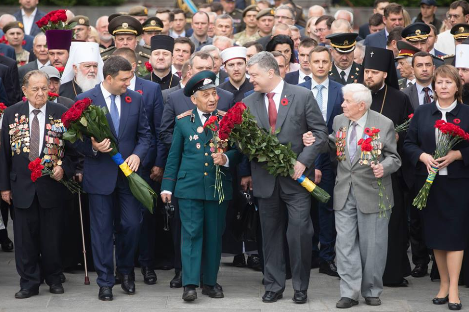 В среду, 9 мая, Петр Порошенко возложил цветы к могиле Неизвестного солдата в Киеве и почтил память погибших. Торжественное шествие во главе с главой государства прошло по Аллее Воинской Славы.