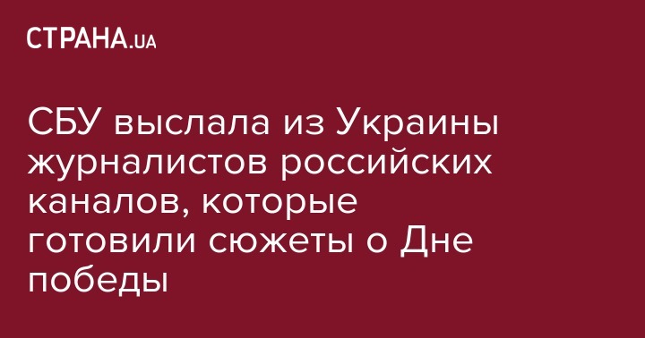 Сотрудники СБУ выслали из Украины спецкорреспондентов российских "Первого канала" и телеканала "Россия", которые были командированы в Киев для подготовки сюжетов о праздновании Дня победы.